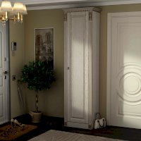 Прихожая выполнена в классическом стиле с декоративными элементами. Фасады и декоративные элементы патинированы, патина наносится вручную, по классической итальянской технологии и защищена матовым лаком.