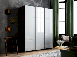 Серия «Прайм» отличается доступностью и функциональностью Навесные двери и лаконичная отделка фасадов создают прогрессивный дизайн. Подойдет тем, кто любит компактную и изящную мебель. Алюминиевые ручки и верхний ходовой профиль обеспечивают легкость и прочность конструкции. Многолетняя безупречная работа благодаря высококачественной немецкой фурнитуре Hettich. Прочная ПВХ-кромка толщиной до 1 мм защищает края от сколов и повреждений. Плавный ход дверей обеспечивает надежная система Hettich Top Line M. Дополнительно можно установить доводчики. Снаружи нет заглушек и винтов благодаря стяжечной системе крепления полок на флипперах, а корпус усилен эксцентриковыми стяжками. Навесные двери скрывают раздвижной механизм от глаз. Они надежно удерживаются в направляющих и не соскакивают. Каждая дверь поделена на 4 секции Секции расставляются в произвольном порядке, создавая новый дизайн фасада.