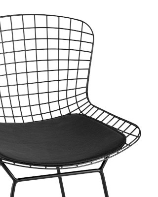 Оригинальная и современная модель барного стула Bertoia прекрасно впишется в любой интерьер дома или ресторана. Спинка и сидение выполнены из металлических прутьев в виде сетки и образуют единое целое. Подушка изготовлена из экокожи в черном цвете. Ножки выполнены из металла, которые плавно переходят в сидение. Такая конструкция стула способна подарить ощущение легкости.