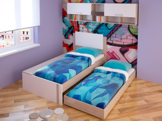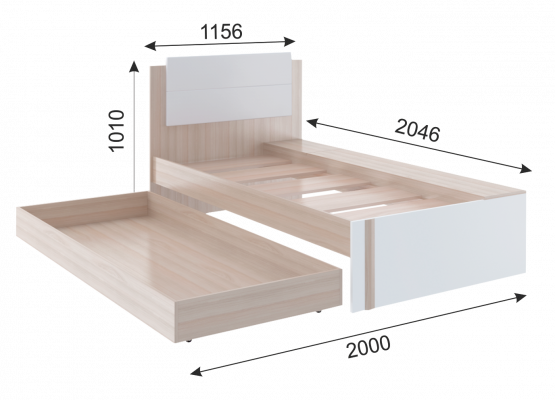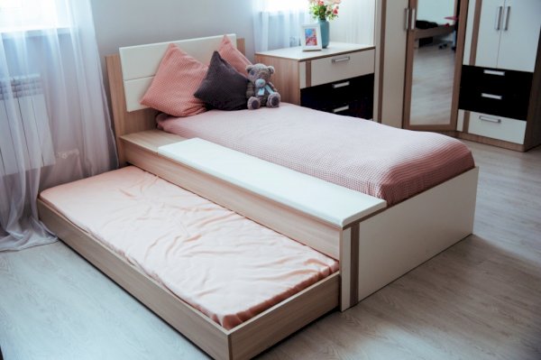 • Выкатной ящик на 6 роликовых опорах можно использовать как для хранения, так и как дополнительное спальное место.
