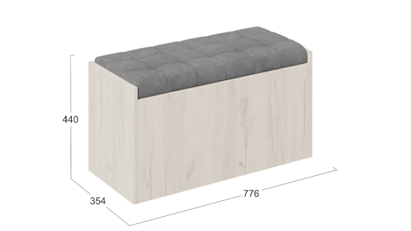 Эксклюзивная древесная текстура каркаса пуфа «Дуб крафт Белый» в сочетании с велюром «Серый» станет эффектным дополнением в дизайне прихожей, кухни и других уголках квартиры.