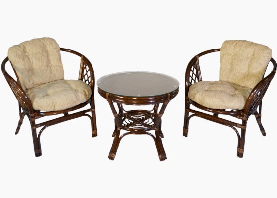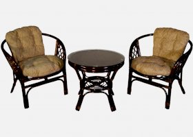 Удобное кресло из натурального ротанга с мягкой подушкой.