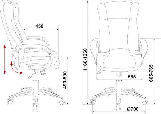 Высота с подлокотниками: 665-765