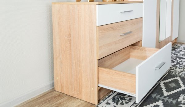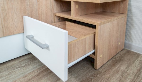 Задняя стенка и дно ящиков: ЛХДФ, покрытый бесцветным лаком