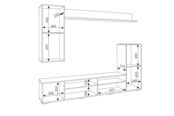 • Гостиная состоит из двух частей: монолитной напольной и навесной.
