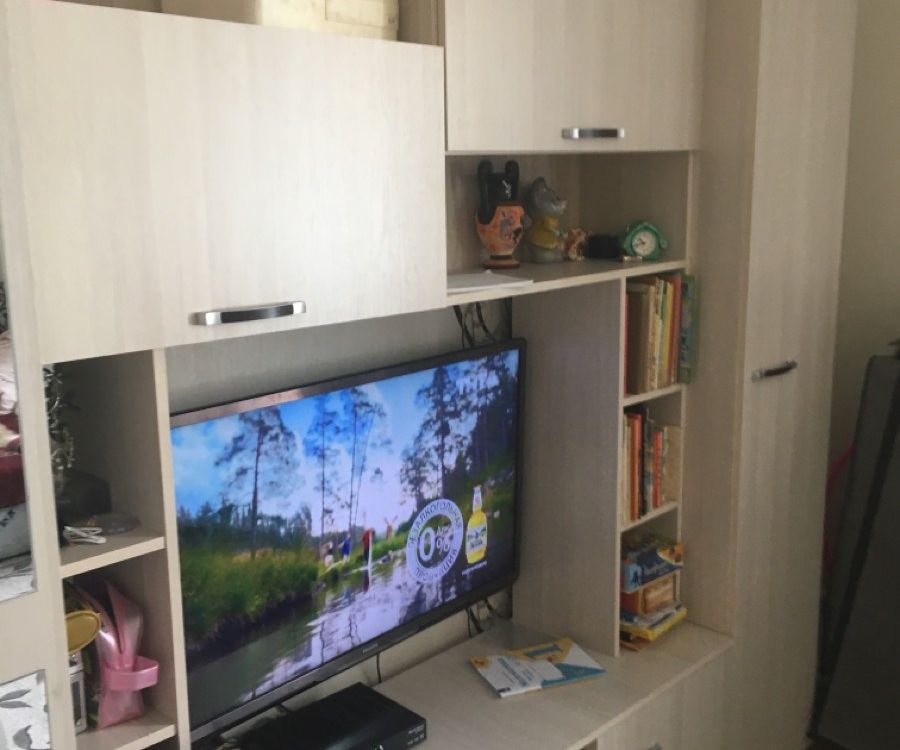Комментарий: Долго искал гостиную под большой телевизор.Подошла только эта,с небольшой переделкой.Убрал боковые полки и поднял среднюю полку.В результате добился чего хотел.Очень доволен.