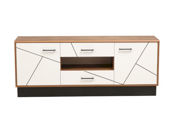 Тумба позиционируется как основа под ТВ, но ее функционал гораздо шире. Здесь можно разместить все, что угодно. На столешнице – любую технику. В ящиках и на полках – сопутствующие технике предметы, документы и просто то, что считаете нужным. Отлично смотрится в дуэте с навесной полкой 54.09. У них одинаковые размеры (1600 мм по ширине), поэтому они очень гармоничны в ансамбле и выглядят, как единое целое.