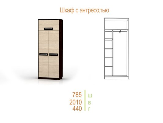 Шкаф с антресолью Куба (SM Мебель)