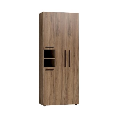Nature 87 Шкаф для одежды и белья создаст все необходимые условия для хранения в прихожей верхней одежды и аксессуаров. В этом шкафу есть все необходимое для размещения верхней одежды: выдвижная штанга, верхняя полка, ряд регулируемых полок. Большая секция оснащена выдвижной штангой для развешивания пальто и курток на плечиках. Выдвижная штанга выдерживает вес до 10 кг. По желанию к модулю можно докупить светодиодную подсветку Nature 94, которая крепится под полку открытой ниши.