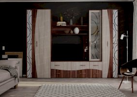 Романтичный и утонченный дизайн гостиной «Бриджит-2» побуждает к мечтам и творчеству. Естественная фактура и нежные цвета отделки, стеклянные и зеркальные дверцы с декоративными рисунками превращают обычный гарнитур в изысканный предмет обстановки. Такой красивой мебелью приятно пользоваться. Рядом с ней хочется отдыхать, проводить время с семьей и друзьями.