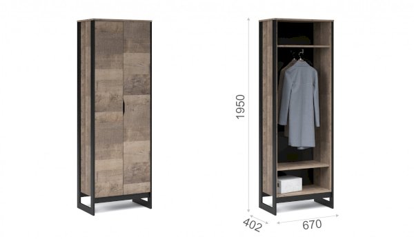 Функциональный шкаф Стокгольм – современное и удобное решение для прихожей, гостиной или спальни в стилях лофт, сканди или эко-минимализм. Трендовый декор – «Дуб Гранж» песочного оттенка с реалистичной имитиацией вручную обработанного дерева, выразительными зернистыми текстурами и характерной формой досок, соответствует последним городским тенденциям. Оригинальные ножки-опоры из МДФ контрастного цвета придают изюминку интерьеру. Внутри предусмотрены полки для белья и отделение с поперечной металлической штангой. Идеально компонуется со всеми модулями системы Стокгольм.