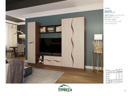 Гостиная Анапа (Террикон) - за 24 691 руб. в Кашире. Купите на сайте kashira.onlinemarketmebeli.ru или по телефону 8(800)505-30-63 уже сегодня! Уточнить наличие, комплектацию, актуальную цену можно бесплатно у менеджера ежедневно. Закажите Гостиная Анапа (Террикон) до конца акции! Доступна покупка в кредит, рассрочку. Доставим со склада или на заказ.