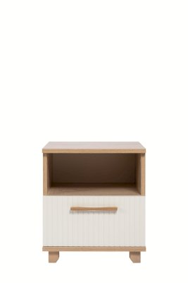 Данная модель тумбы оснащена открытой нишей и выдвижным ящиком. Ящик оборудован шариковыми направляющими полного выдвижения. Удобство использования дополняет деревянная ручка из массива дуба.