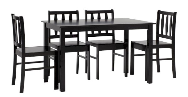 Обеденная группа из массива гевеи, продается комплектом из стола и четырех стульев. Стулья и ножки стола выполнены из массива дерева гевеи, которое отличается высокой влагостойкостью, устойчивостью к изменениям температур и прочностью.