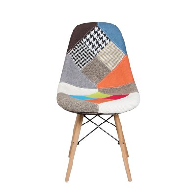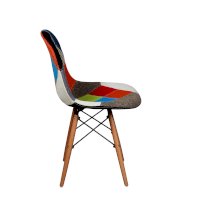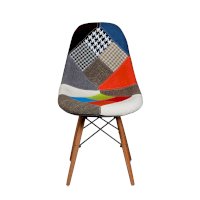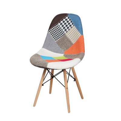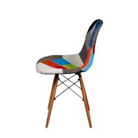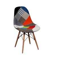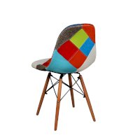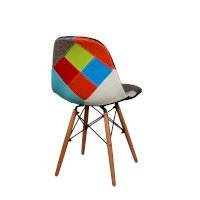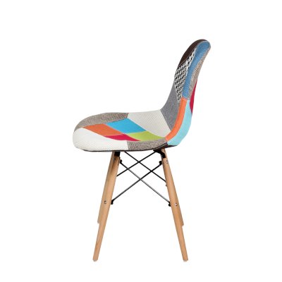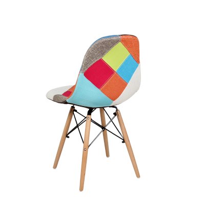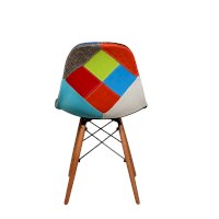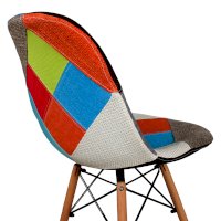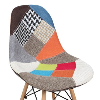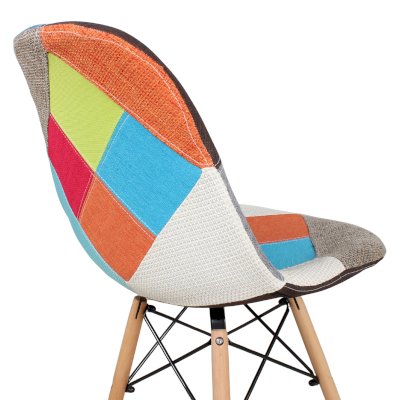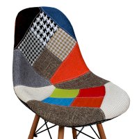 Сиденье и спинка обшиты тканью из лоскутов в стиле пэчворк (лоскутное шитьё).
