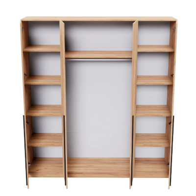 Четырехстворчатый шкаф имеет универсальный вариант для хранения: на боковых полках можно разместить нижнее белье, одежду, постельное белье, а на горизонтальной штанге развесить одежду на вешалках. Сочетание платяного и бельевого отсеков позволяет использовать шкаф в качестве комбинированного.
