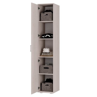 Модель может использоваться как самостоятельный предмет интерьера, так и стать дополнительным модулем в сочетании с гостиной или шкафом одноименной коллекции. Пенал Белла выполнен из ЛДСП в ясень белый. На шести полках поместятся все необходимые вещи.
