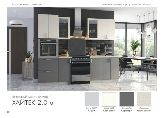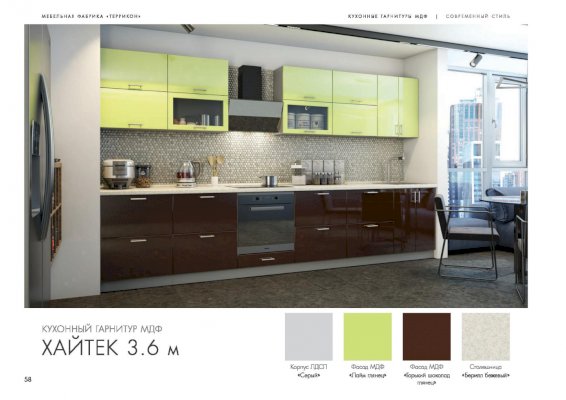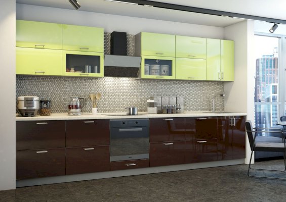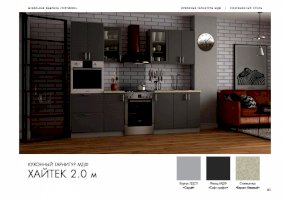 Специально для поклонников ультрасовременных интерьеров создан кухонный гарнитур «Хайтек». Мебель наделена всеми характеристиками этого стиля: стремительными линиями, монохромными цветами, глянцевыми поверхностями, минималисткой фурнитурой. Декоративные элементы не используются. Благодаря этим особенностям дизайна комплект не загромождает пространство.
