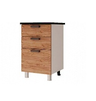 Фактурный древесный декор фасадов кухни "Крафт" отсылает к природной естественности и грации, а черные элементы создают яркие акценты, привлекающие к себе внимание. Четкие геометрические линии, массивные ручки под металл и фасады под дерево помогают отступить от стандартных шаблонов оформления кухонного пространства, обустроив у Вас дома воплощение изящества и элегантности!