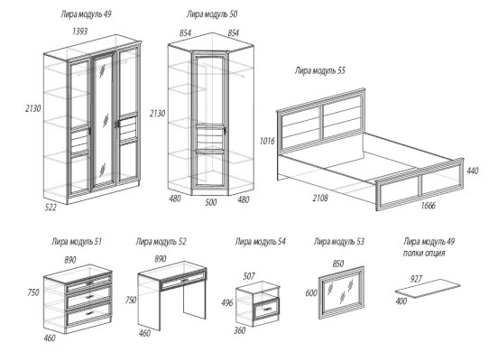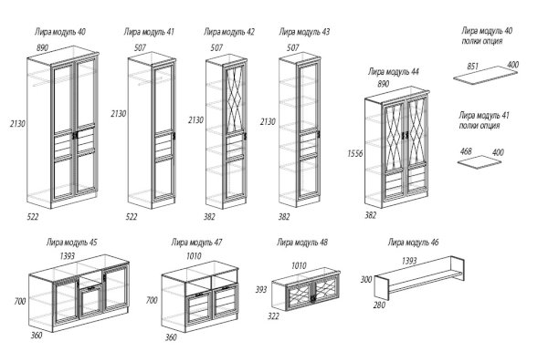 Модули комплекта: 42, 46, 45, 40, полки к шкафу 40