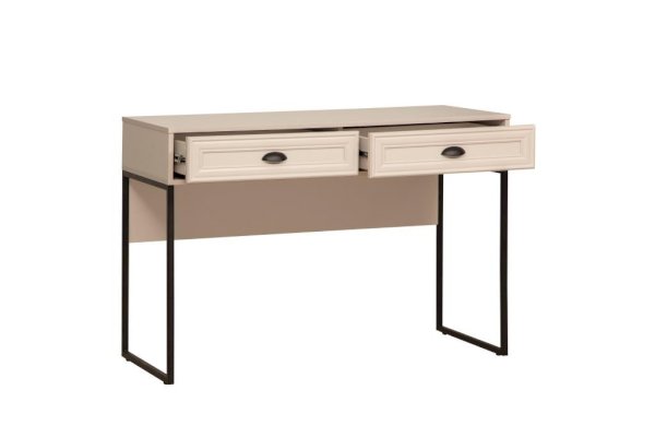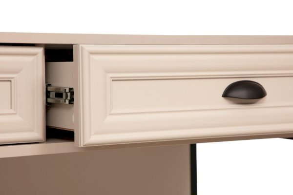 Туалетный стол –  неотъемлемая часть спальни или женской комнаты. Каждая девочка, девушка или дама хочет иметь собственное пространство, свой уголок красоты, для того чтобы привести себя в порядок, нанести макияж, а затем покрасоваться, удобно и компактно расставить свою косметику и парфюмерию, аккуратно сложить украшения и аксессуары. Это красивый и практичный атрибут мебели. Он может послужить и как место для комфортного чтения вашей любимой книги. Корпус стола выполнен из ЛДСП и металлического профиля. Металлическая ручка-ракушка с матовой поверхностью проста в установке, надежна и удобна в использовании, и к тому же, имеет прекрасный внешний вид. Фасады вкладные с рамочным профилем собственного производства.