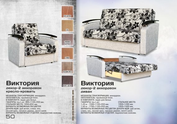 Диван аккордеон Виктория с декором-2 (Асмана)