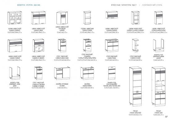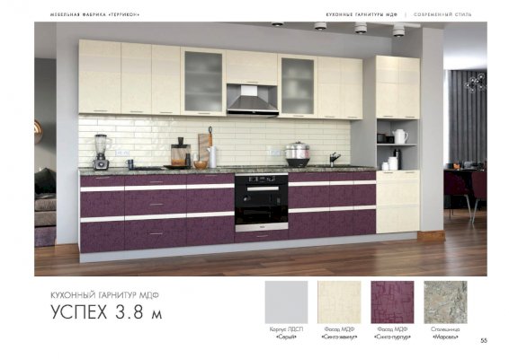 Кухня Успех изговаливается также в цветах серый/гобелен платина; серый/гобелен шампань; серый/синга жемчуг; серый/синга шампань. Модули в этих цветовых решениях вы сможете найти в нашем интернет-магазине.