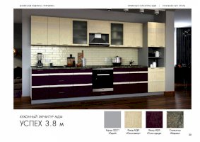 Стараетесь окружить себя и своих близких самыми лучшими вещами? Выберите кухонный гарнитур «Успех»! Стильная и модная мебель станет украшением вашего дома. Ее отличают гладкие фасады и неброская фурнитура. Эффект эксклюзивности и престижности достигается с помощью элегантной комбинации нескольких цветов. Для оформления одного комплекта могут использоваться целых три оттенка. Например, шампань, жемчуг и платина.