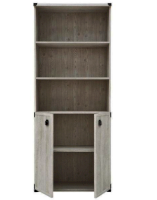 Шкаф разделен на 2 отделения: верхнее –открытое отделение с полками, нижнее – отделение за распашными дверями, за которыми расположена 1 полка