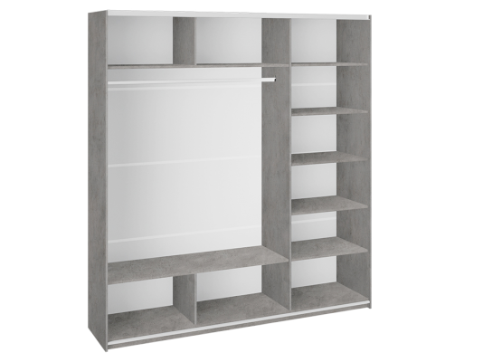 Фурнитура: Алюминиевые ручки дверей, алюминиевый ходовой профиль, полкодержатель флиппер, усиленные эксцентриковые стяжки
