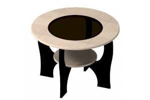 Стол журнальный станет прекрасным украшением интерьера. Круглая столешница оснащается вставкой из тонированного стекла. Фигурные ножки прикрепляются к столешнице и небольшой круглой полочке.