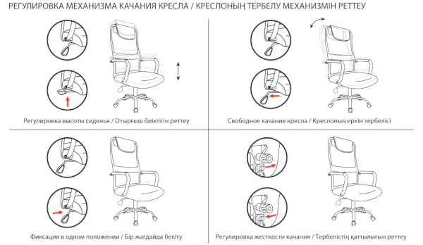 Тип механизма кресла: "топ-ган" качание с регулировкой под вес и фиксацией в 1 положении