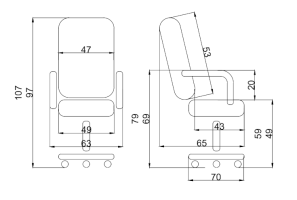 Ширина сиденья: 490 мм