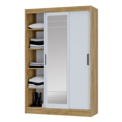 Трёхдверный шкаф-купе Тео ШКК-02 представляет собой сочетание практичности и функциональности. Это оптимальный вариант с точки зрения эргономики пространства. Раздвижные створки снабжены удобными ручками, центральная створка полностью декорирована зеркалом с еврокромкой, которое создаёт иллюзию расширенного пространства. Внутри с одной стороны находятся пять просторных полок для хранения вещей и постельного белья, с другой стороны – вместительная зона хранения с двумя горизонтальными хромированными штангами для одежды на вешалках. Красивое и практичное решение по лучшей цене — это шкаф-купе Тео ШКК-02.