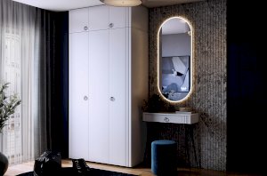 Металлические ручки дополняют общий дизайн, придавая ему эстетичный и современный вид. Сочетание черного и белого цветов делает этот туалетный столик универсальным и легко вписывающимся в любой интерьер.
