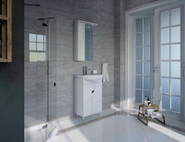 Компактный зеркальный шкаф Панда 50 от AQUATON подходит для ванных комнат со скромными габаритами. Простая и практичная модель отличается стильным современным дизайном. Фасад из МДФ украшен изящной фрезеровкой и покрыт белой глянцевой полиэфирной краской ультрафиолетового отверждения. Корпус модели выполнен из влагостойкой ЛДСП. Верхняя панель оснащена подсветкой, розеткой и выключателем. Справа от зеркала расположен шкафчик для хранения с полкой. Зеркальный шкаф станет идеальным дополнением к тумбе AQUATON Панда 50.