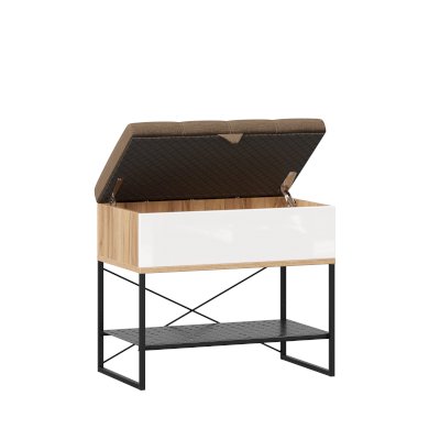 - Крышка (сиденье) откидывается на кронштейнах, под сиденьем короб высотой 150 мм для хранения