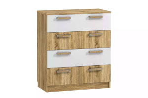 Комод «Фанк» -  идеально подходит для обустройства комнаты подростка. Светлые тона мебели, выдержанный стиль прекрасно смотрятся в любом интерьере. Четыре удобных выдвижных ящика – это огромный объем  для хранения белья, предметов одежды и аксессуаров. Выдвижные ящики оснащены шариковыми направляющими полного выдвижения, равномерно распределяют вес содержимого и обеспечивают плавный бесшумный ход ящика. Комод отлично сочетается с другими моделями коллекции «Фанк».