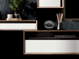 • 2 выдвижных ящика частичного выдвижения с направляющими нижнего крепления с доводчиками