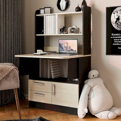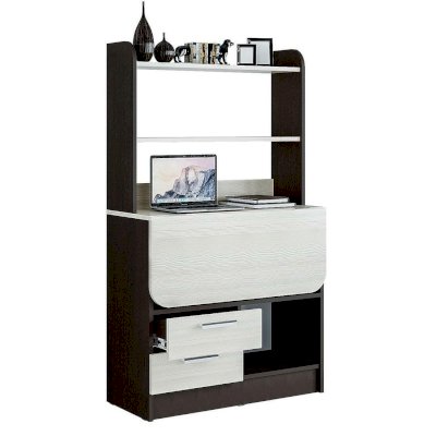Организовать рабочее место даже в небольшой комнате можно с помощью письменного стола Рокки. Тумба, оснащенная открытыми полками и выдвигающимися ящиками. Имеет столешницу, которая по необходимости может раскладываться в рабочую поверхность. Стол-тумба выполнен из ЛДСП классических цветов венге и ясень белый.