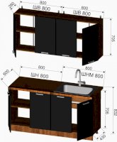 Габариты кухни 1600 мм (ШхВхГ):