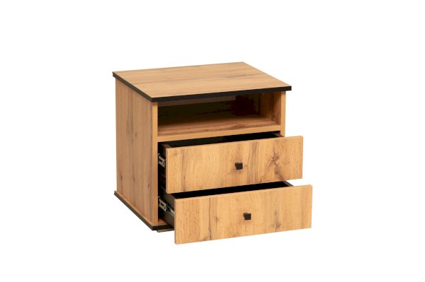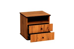 Прикроватная тумбочка содержит три отделения – открытую полку и два выдвижных ящика. Столешница имеет оптимальную высоту – такую, чтобы можно удобно и легко дотянуться и положить вещь, лежа в кровати. На тумбу можно поставить лампу, в открытую полку положить книгу, телефон, планшет – они будут одновременно и под рукой, но в то же время не будут вам мешать. В выдвижных ящиках хорошо хранить документы. Такие тумбочки обычно приобретают в паре – для нее и для него – и ставят по обе стороны двуспальной кровати. Если тумбочка женская, в выдвижные ящики размещают духи, косметику, дамские мелочи, если мужская – бумаги, ежедневники, гаджеты.