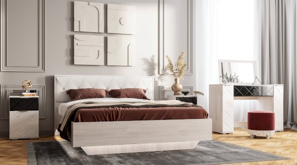 Настоящим украшением вашей спальни может стать прикроватная тумба Кимберли. Фасады модели выполнены в комбинации белого и черного цвета и имеют изящную гравировку. В выдвижном ящике и скрытых за дверцей полках получится хранить вещи, которые всегда должны быть под рукой.