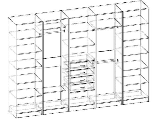 Вы можете выбрать любой цвет корпуса из представленных ниже вариантов цветов ЛДСП.Также вы можете собрать cами свою гардеробную Alex