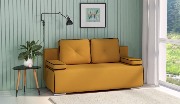 Диван Асти выполнен в современном стиле – компактность, функциональность и комфорт. Контрастный кант по контуру и отделка пуговицами добавляют индивидуальность модели. Небольшой размер и подушки вместо подлокотников отлично сэкономят пространство комнаты, а на широком сиденье с низкой спинкой и мягкими приспинными подушками удобно проводить время. С помощью механизма трансформации «еврокнижка» он легко раскладывается в ровную двуспальную кровать без стыков, а вместительный бельевой короб поместит необходимые постельные принадлежности. Декоративные подушки в стоимость не входят. Декоративные хромированные ножки заказываются отдельно.