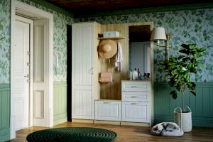 Тумба Оливия НМ 040.45 Х обеспечит аккуратное хранение обуви в прихожей. Для этого лучше всего подойдет нижнее отделение с полкой, скрытое за откидным фасадом. За счет встроенных газлифтов дверца открывается плавно. В верхней части тумба оборудована двумя выдвижными ящиками, в которых можно хранить средства по уходу за обувью, ключи.