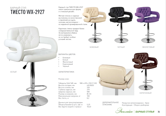 | Разновидность стула | барный / стул кресло |