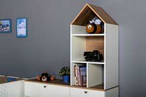 Кровать оснащена съёмным мягким элементом с карманами, передвижным бортиком и декорирована оригинальным рисунком - мультяшными пчёлками, которые никого не оставят равнодушным.