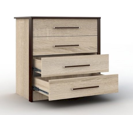 Классический комод Эшли - функциональное дополнение интерьера. Подходит для хранения белья, одежды и текстиля. Ящики на телескопических направляющих, позволяют рационально использовать всё внутреннее пространство, обеспечивая удобный и легкий доступ ко всему содержимому. Скргуленные края верхней крышки и профиля из МДФ 22мм по внешним краям - максимально безопасное использование мебели. Детали цвета венге подчеркивают древесную текстуру и рисунок светлого дуба сонома, придает эффектный вид. Мебель выполнена из экологичных материалов.