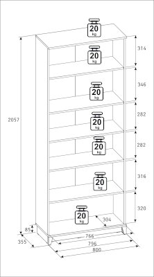 Максимальная нагрузка на полку: 20 кг